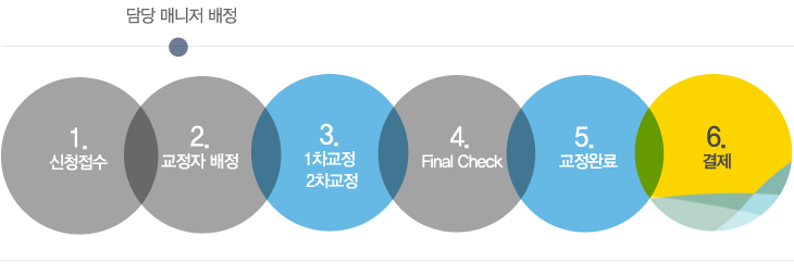 하리스코의 개인고객에 대한 교정작업은 담당 매니저 배정, 신청접수, 1차교정, 2차교정, Final Check, 교정완료 결제 등의 프로세스로 진행이 됩니다.